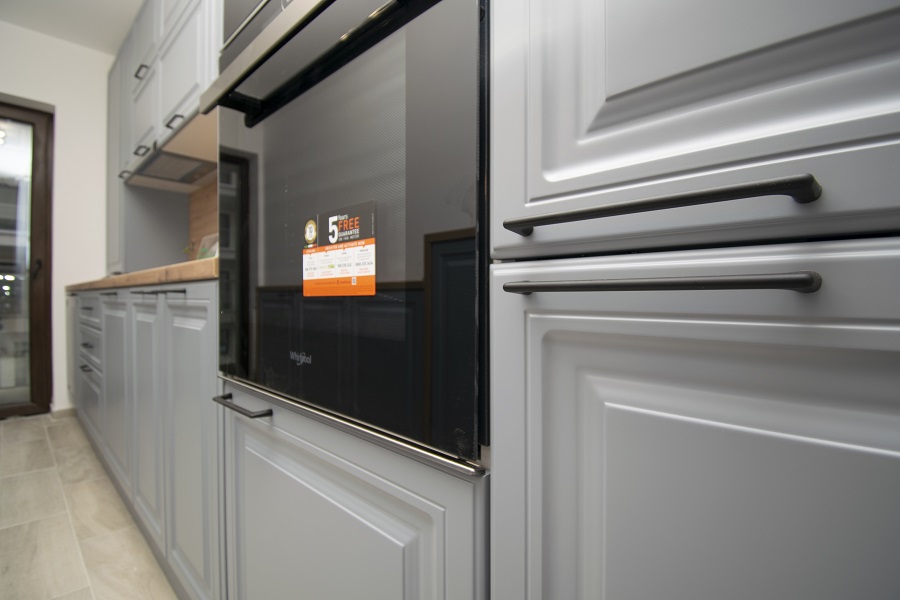 Fronturile MDF vopsite mat cu frezare maner adaugă un plus de eleganță și stil mobilierului nostru. Fiecare detaliu este finisat cu grijă pentru a crea un aspect contemporan și sofisticat în bucătăria ta. Cu această alegere, mobila noastră de bucătărie Kitchen Expert devine o piesă de rezistență în decorul tău.