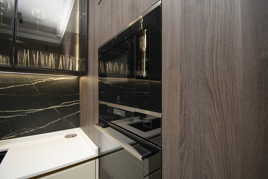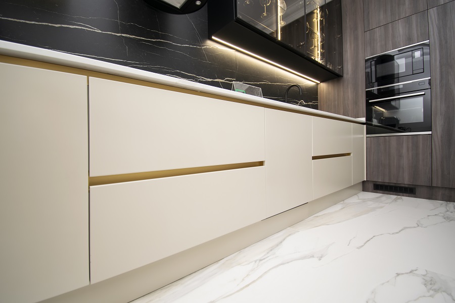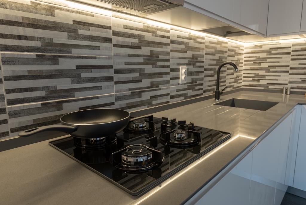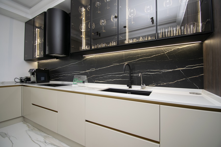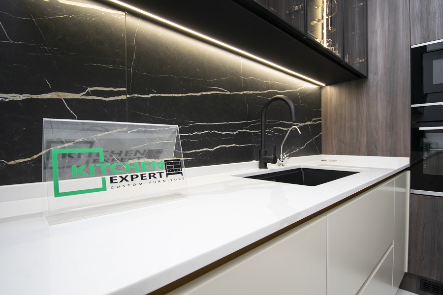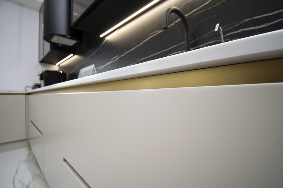Cu o bandă LED strategic amplasată, mobila noastră de bucătărie Kitchen Expert te va încânta cu un iluminat ambiental perfect pentru a crea o atmosferă plăcută și relaxantă în timpul pregătirii mesei sau în timpul petrecut în bucătărie.