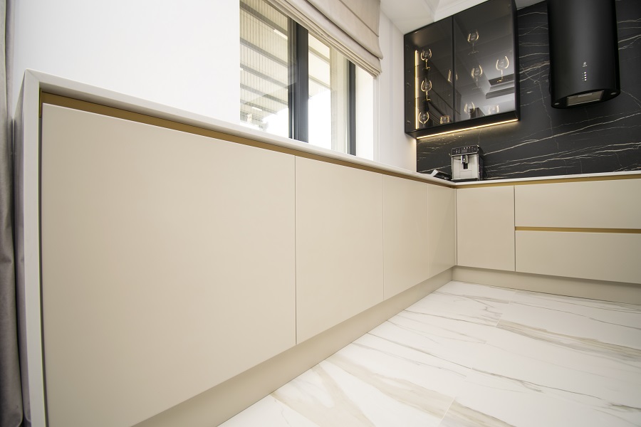 Fronturile MDF vopsite mat cu frezare maner adaugă un plus de eleganță și stil mobilierului nostru. Fiecare detaliu este finisat cu grijă pentru a crea un aspect contemporan și sofisticat în bucătăria ta. Cu această alegere, mobila noastră de bucătărie Kitchen Expert devine o piesă de rezistență în decorul tău.